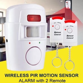 Kit alarme residencial sem fio sensor de presença + 2 controles + 1 suporte de fixação. - proteger e deter intrusos em sua casa e escritório com este alarme de sensor de movimento de controle remoto sem fio. - ideal para uso em garagens e galpões. - sem fio, detector infravermelho, ativado por movimento. - incluem 2 controles remoto infravermelho direto. - unidade de montagem ajustável. - fácil de instalar. - utiliza 4 pilhas aa não inclusas conteúdo: 1 alarme residencial sem fio com sensor de presença; 2 controles 1 suporte para fixação do alarme.