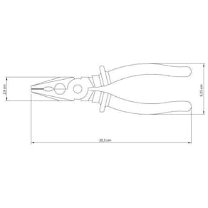Informações GeraisCorpo forjado em aço especial e temperado. O aço carbono especial empregado na fabricação do produto, aliado à têmpera especial no gume de corte garantem maior resistência.Acabamento fosfatizado.Cabeça e articulação lixadas.Têmpera especial no gume de corte e mandíbulas.Produto em conformidade com a NBR 9699 e NR10. Isolação 1.000 V para uso em locais com baixas tensões de até 1.000 V em corrente alternada.Articulação suave para facilitar o uso.Os cabos possuem um formato ergonômico para aumentar o conforto.As ferramentas são produzidas e testadas conforme normas específicas.Recomendações de UsoUse óculos, luvas e outros equipamentos de proteção de acordo com a tarefa a ser executada.Observe as indicações de uso de cada tipo de alicate ou torquês. Nunca utilize um alicate ou torquês para cortar arames endurecidos, a não ser que tenha sido projetado para este fim.Nunca utilize o alicate ou torquês como martelo. Ele pode trincar ou até mesmo quebrar.Nunca exponha os alicates ou torqueses ao calor excessivo. Isto pode alterar o tratamento térmico aplicado no corte e afetar o seu desempenho.Sempre posicione o corte do alicate ou torquês perpendicularmente ao eixo do arame para uma operação mais rápida e segura.Utilize alicates isolados, identificados pela marcação 1.000 V no cabo, quando for necessário trabalhar em locais com corrente elétrica. Importante: nestes casos, inspecione a integridade da isolação elétrica, e, se aparecerem trincas na isolação, suspenda o uso imediatamente.Nunca aumente o comprimento dos cabos dos alicates ou torqueses. Isto amplifica a força exercida sobre a cabeça da ferramenta podendo quebrá-la.Nunca utilize o alicate ou torquês em porcas e parafusos. Para estes trabalhos, indica-se o uso de chaves de aperto.Lubrifique periodicamente a articulação. Isto aumenta a vida útil do produto e melhora sua performance.Armazene em local limpo e seco.Certificaçãoproduto em conformidade com a NBR9699 e NR10. Ean: 1000000179859