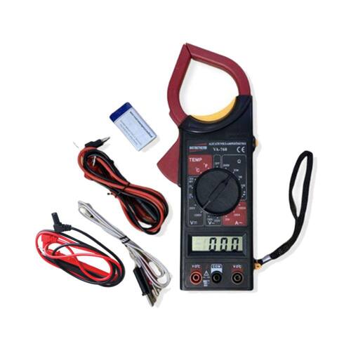 KIT VOLT AMPERÍMETRO PORTÁTIL MOD.VA-760 - TIPO ALICATE - CAT II 600V   DESCRIÇÃO: Alicate volt amperímetro portátil mod. VA-760 CAT I - 1000V/CAT II - 600 V com display de cristal líquido (LCD) de 3 ½ dígitos. Realiza medições de corrente CA através da garra, tensão CA/ CC, resistência e teste de continuidade audível e medição de temperatura por sensor de contato tipo K. Conta com indicação de bateria baixa e indicação de sobre - escala, botão de congelamento de leitura (HOLD) e proteção de sobrecarga para garantir a segurança e a confiabilidade durante as medições.   DESTAQUES: Digital, portátil, Realiza medição de corrente CA, tensão CA/CC, teste de continuidade audível, realiza medição de temperatura através de um sensor de temperatura tipo k. Conta com indicação de sobre - escala e proteção de sobrecarga para garantir medições seguras em atendimento a NR10.   APLICAÇÕES: Utilizado em medições de tensão CA/ VCC, resistência e teste de continuidade audível. As medições de corrente CA são realizadas por meio da garra, ou seja, não é necessário o romper o condutor, medir a temperatura de um objeto sobreaquecido como disjuntores, conduletes, caixas de passagens, entres outros. Ideal para profissionais da área de elétrica e o atendimento da NR10 em medições preventivas e análise de riscos.   ESPECIFICAÇÕES TÉCNICAS: Display de Cristal Líquido (LCD) de 3 ½ dígitos, Categoria de segurança: CAT-II - 600V Tensão DC: Faixa de medição: 100 µV ~1000 V Escala: 200 mV, 2 V, 20 V, 200 V, 200 V, 1000 V Resolução: 100 µV, 1 mV, 10 mV, 100 mV, 1V Precisão: ± (0,5% de leitura ± 1 dígito), ± ( 0,8% de leitura ± 1 dígito ) Na escala de 1000 V Tensão AC: Faixa de medição: 100 mV ~750 V Escala: 200 V, 750 V Resolução: 100 mV, 1 V Precisão: ± ( 1% da leitura + 4 dígitos ) Corrente AC: Faixa de medição: 10 mA ~ 1000 A Escala: 20 A, 200 A, 1000 A Resolução: 10 mA, 100 mA, 1A Precisão: ± (2% da leitura + 5 dígitos) ?800A, ± ( 3,0% de leitura ± 5 dígitos ) > 800A Resistência: Faixa de medição: Escala: 200 ?, 20 K?, 2 M Resolução: 100 m?, 10 ?, 1 k? Precisão: ± ( 1,0 % de leitura ± 3 dígitos ) Temperatura: Faixa de medição: 0 ºC ~ 750 ºC / 32 ºF a 1382 ºF Escala: 750 ºC, 1400 ºC Precisão: 0 º C a 400º C / 32 a 752º F: ±( 1% da leitura ± 3 dígitos ) 400 º C a 750º C / 752 a 1400º F: ± ( 2% da leitura ± 1 dígito ) Data Hold: Congela a leitura no display Diâmetro do Condutor: 50mm Temperatura de Operação: 0 a 40ºC Umidade de Operação: Máx. 80% RH Alimentação: 1 Bateria de 9V Dimensões: 230 x 90 x 37mm Peso: 350g   ACESSÓRIOS FORNECIDOS:Alicate volt ampérimetro VA-760 Par de pontas de prova PPM-200Par de pontas de prova PPM-100 Bateria 9 Volts Estojo para transporte mod. ES-01 Sensor de temperatura tipo K mod. S-02k Manual de instruções