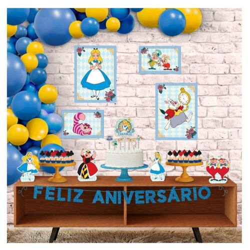 Transforme sua festa em um verdadeiro mundo de maravilhas com o incrível Kit Alice no País das Maravilhas Composto por enfeites encantadores, toppers para bolo, apliques decorativos e uma faixa exclusiva Feliz Aniversário, nosso kit vai levar toda a magia dessa história para a sua celebração.O grande diferencial dos nossos produtos é a qualidade excepcional da impressão em alta definição, que retrata com fidelidade os detalhes dos personagens e do tema. Você vai se surpreender com o nível de brilho e a durabilidade do material.Esteja ciente de que as imagens são meramente ilustrativas e não incluem bandejas, doces, bolo, arco e balões. No entanto, nossa embalagem completa traz tudo o que você precisa para uma festa dos sonhos em um único pacote.Dentro da nossa embalagem encantada, você encontrará: 06 encantadores enfeites para mesa, fabricados em EVA com uma impressionante impressão de alta definição, para adicionar um toque mágico à sua decoração. 07 toppers fascinantes para bolo, também feitos de EVA com uma qualidade de impressão incrível, para transformar seu bolo em uma obra-prima digna do País das Maravilhas. 24 apliques decorativos que vão encantar seus docinhos e outros alimentos, fabricados com todo o cuidado em EVA, com uma impressão detalhada que retrata fielmente o tema. 01 faixa Feliz Aniversário, fabricada em EVA e acompanhada por uma delicada fita de cetim, para dar um toque especial à sua celebração e criar momentos inesquecíveis. 01 painel de TNT, com 40grs. De leveza e estampado com tintas à base de água, trazendo um cenário maravilhoso com 1,40m de altura para decorar a parede e transportar seus convidados para o mundo dos sonhos.Não perca tempo Garanta agora mesmo o seu Kit Alice no País das Maravilhas e transforme sua festa em um evento inesquecível. Não perca essa oportunidade de encantar a todos com uma festa temática da Alice no País das Maravilhas. Produto licenciado e exclusivo. Compre agora e embarque nessa aventura mágica