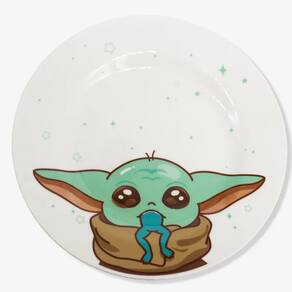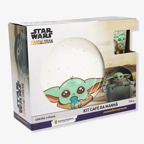 Feito em cerâmica de alta qualidade, o kit conta com uma caneca de 300ml, perfeita para café ou suco, um bowl de 400ml para cereais ou frutas, e um prato de 19cm para suas refeições principais. Os detalhes inspirados no Baby Yoda garantem um toque de magia em cada garfada.