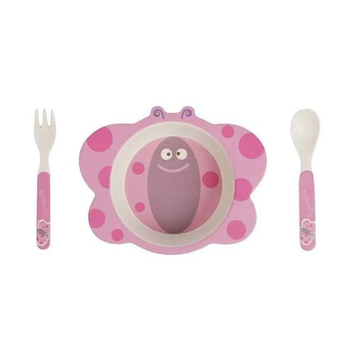 Kit Alimentação Borboleta Eco - Girotondo Baby Kit de alimentação ecologicamente correto, durável e biodegradável. Feito com fibra de bambu, fibra de madeira e pó de milho. Design diferenciado. Com tigela no formato arredondado e abas com recorte. O bambu possui uma propriedade natural de eliminação das bactérias que previne a proliferação e ainda as combate. Tema: Borboleta Contém: Prato, Garfo e Colher. Medida da Embalagem: Peso: 100 g Altura: 8 cm Largura: 19 cm Comprimento: 17 cm Ean: 7898568444335