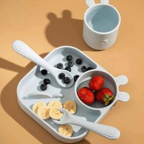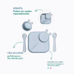 Kit de Alimentação Infantil Silicone 4 Peças Azul - Petit Piá Kit de Alimentação Infantil Silicone 4 Peças Azul- Petit Piá