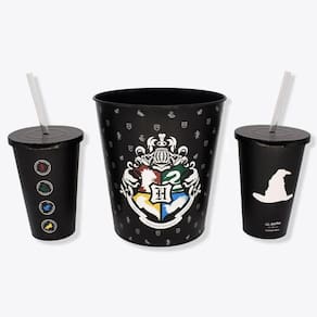 Kit Pipoca Hogwarts - Harry Potter é a companhia certa para os dias de preguicinha no sofá ou na cama Vai jogar ou assistir série Filme Jogo Não importa o programa, a pipoca e o refri a gente garanteO kit pipoca é feito em território nacional, com detalhes em suede que vão fazer você se apaixonar É a companhia ideal para aqueles que não dispensam uma pipoquinha na hora de maratonar aquela série ou saga preferidas Além do baldão o kit acompanha dois copos para aquela sessão de ação rs com o crush e é claro, uma almofada que encaixa o balde e o copo, feita em tecido 100% poliéster com um toque maravilhoso e enchimento em fibra o que a torna muito fofinha é impossível não se apaixonarEspecificações:Almofada:Altura: 10cm Largura: 42cm Comprimento: 30cm Peso: 0,430gr Material: Poliéster Enchimento: FibraCopo:Altura: 14cm Largura: 6cm Comprimento: 6cm Peso: 0,65gr Capacidade: 550ml Material: PlásticoBalde:Altura: 19cm Largura: 6cm Comprimento: 19cm Peso: 0,145gr Capacidade: 4,2L Material: Plástico