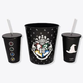 Kit Pipoca Hogwarts - Harry Potter é a companhia certa para os dias de preguicinha no sofá ou na cama Vai jogar ou assistir série Filme Jogo Não importa o programa, a pipoca e o refri a gente garante