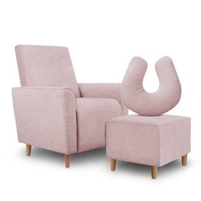 Kit Amamentação Poltrona + Puff + Almofada Julia Suede Rosa Bebe