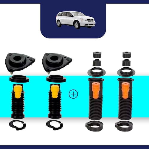 2 coxim amortecedor dianteiro já vem com rolamento , 2 batente da haste, 2 coifa guarda pó, 2 calço de mola. 2 coxim amortecedor traseiro, 2 batente da haste, 2 coifa guarda pó, 2 calço de mola