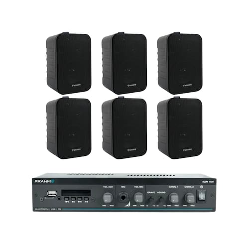 Kit Amplificador Frahm Slim 1600 G5 + 6 Caixas Acústicas ENC70 Encore 1 - Preto -