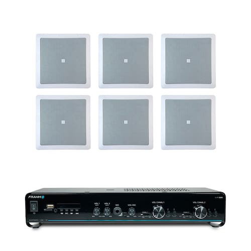 Este kit é uma solução robusta e de alta qualidade, ideal para sonorizar múltiplos ambientes ou uma área extensa, garantindo excelente cobertura de áudio e integração visual discreta. O centro de comando é o Amplificador Estéreo Slim, que oferece uma potência intermediária, capaz de gerenciar os seis pontos de som com clareza. Seu design compacto permite fácil acomodação, e a conectividade inclui conexão sem fio (Bluetooth) para streaming, além de entradas USB/SD e auxiliar, oferecendo flexibilidade na escolha da fonte de áudio.