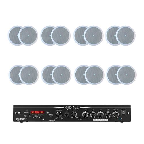 Complementando a performance do sistema, o conjunto conta com dezesseis unidades de embutir com design arredondado, projetadas para se integrarem perfeitamente ao forro enquanto entregam uma dispersão sonora impecável. Cada peça foi calibrada para oferecer equilíbrio entre as frequências, garantindo que a música ou anúncios sejam ouvidos com clareza em cada canto do ambiente, sem distorções. É a escolha perfeita para quem necessita de cobertura total e uniforme, unindo uma estética minimalista que não interfere na arquitetura com a resistência necessária para uma sonorização profissional de longo alcance.