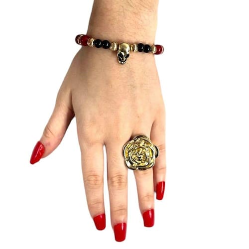 Kit Anel + Pulseira Pomba Gira Cristal e Silicone