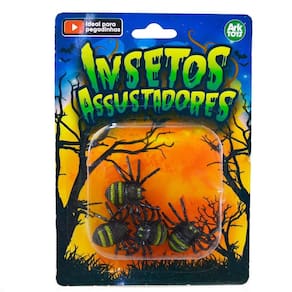 KIT Animais de Plástico 04 Peças Inseto Sor Insetos de Plástico 4 Peças - Aranha ótima para dar aquele susto em seus amigos;\n- Coloque sua criatividade em prática e divirta-se muito;\n- Possui 4 insetos ;\nEspecificações:\nMarca : ARK\nTipo de material : Plástico\nCores ou Estampa :\nDimensões do Produto : 7 X 2 X 0,5 CM\nDimensões da Embalagem : 15 X 11 X 2 CM\nPeso Bruto (Gramas) : 0.018 Marca: Não Informado