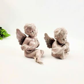 Cada anjo deste kit é cuidadosamente esculpido em cerâmica de alta qualidade, apresentando uma tonalidade lilás acinzentada que emana tranquilidade e elegância. Com detalhes delicados e expressões serenas, esses anjos adicionam uma atmosfera celestial a qualquer ambiente.
