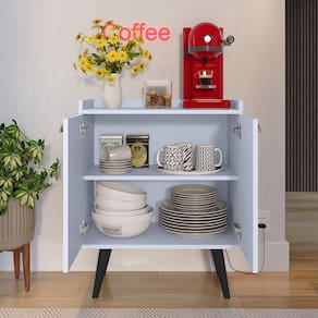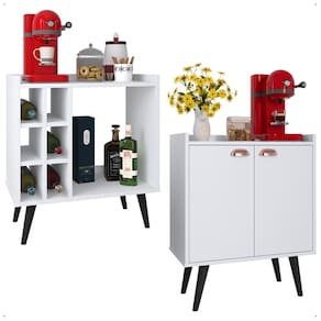 O Aparador Baden conta com uma adega para 6 garrafas e duas prateleiras internas, sendo ideal para montar um charmoso cantinho do café ou bar.