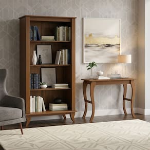 O aparador traz um toque decorativo e funcional, servindo como apoio para vasos, luminárias e objetos de destaque. Já a estante, com suas prateleiras bem distribuídas, oferece ampla área para organização de livros e itens decorativos, mantendo o ambiente sempre harmonioso.