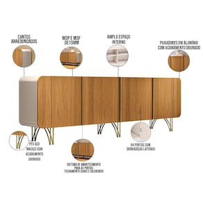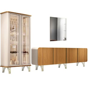 Kit Aparador Buffet Living Santiago Cristaleira Adega Síria e Espelho Ibiza B01 Cinamomo Off - Lyam - Off White