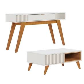 Com design agradável e muita identidade o Kit Aparador Para Sala De Estar Com Mesa De Centro Delta 01 Gaveta C04 Freijó Off White - Lyam Decor dará um up em sua decoração! Os detalhes ripados contrastam com o nicho, em tonalidade diferente, criando uma atmosfera harmoniosa no ambiente, já os pés em madeira maciça remetem-nos ao estilo retrô, que complementa lindamente a peça.