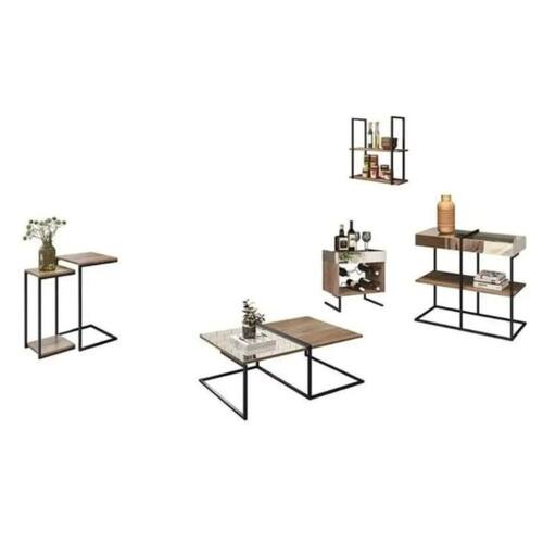 Adquira agora o Conjunto de Mesas, Adega, Aparador e Prateleira Estilo Industrial Aurora da Dream Home e transforme sua casa em um espaço deslumbrante!