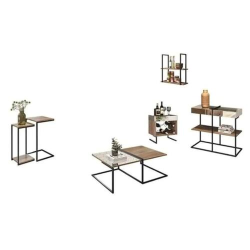 Compre já o Jogo de Mesas, Adega, Aparador e Prateleira Estilo Industrial Aurora da Dream Home e ouse na sua utilização deixando a sua casa ainda mais linda!