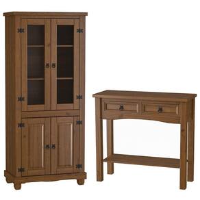 Kit Aparador Rústico 2 Gavetas Com Cristaleira De Madeira Majestic M06 Imbuia Fosco - Lyam Decor