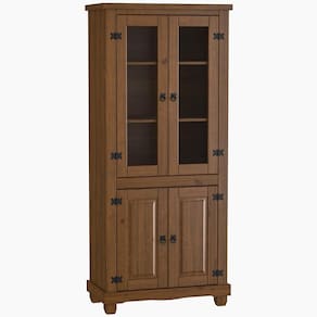A celebração do rústico com distinção. A Cristaleira de Madeira Majestic protege e exibe suas peças mais especiais atrás de portas de vidro, enquanto o Aparador Rústico com tampo frisado oferece armazenamento sólido. Juntas, formam uma peça de presença imponente para sua sala de jantar, onde o acabamento imbuia fosco e o ferro fundido contam uma história de tradição e qualidade. A Linha Majestic é mais que móveis rústicos para sala de jantar, é tradição que se expõe com orgulho. Adquira já o seu conjunto e surpreenda-se!
