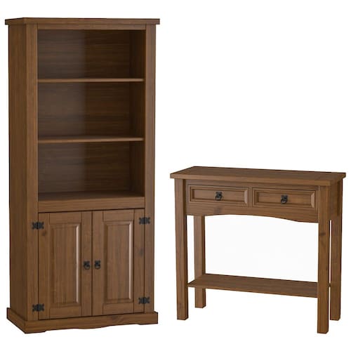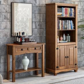 Autenticidade pura para sua sala de estar. Este conjunto robusto combina um Aparador Rústico com tampo maciço frisado com uma Estante Livreiro 2 Portas, a junção perfeita da beleza com a praticidade. Na estante, guarde livros, decorações e documentos com a força e a presença marcante da madeira maciça, enquanto no aparador você dispõe itens personalizados como porta-retratos ou até mesmo aproveite a bancada como área para o cantinho do café. Para completar o design, os puxadores argolas em ferro fundido reforçam o caráter atemporal e durável do estilo rústico clássico.