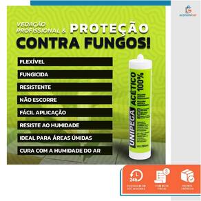 Silicone Acético Unipega • Indicado para vedação de alumínio, vidro, azulejos e box de banheiro • Excelente adesão e secagem rápida • Pode ser utilizado em áreas úmidas