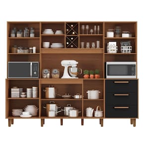 O Kit Apollo possui design moderno e qualidade única, um móvel ideal para sua cozinha. Possui oito portas de abrir, três gavetas espaçosas, todas com corrediças telescópicas que proporcionam maior amplitude de abertura, seis prateleiras internas com excelente espaço para armazenagem de produtos e utensílios. Compartimentos para acomodar também aqueles eletrodomésticos indispensáveis para o dia a dia, e nicho garrafeiro com capacidade para 8 unidades. Tudo para organizar e facilitar as necessidades de sua cozinha. Aproveite! Acabamento da Prateleira: Pintura Texturizada UV Escala de Brilho da Prateleira: Fosco Acabamento da Gaveta: Pintura Texturizada UV Escala de Brilho da Gaveta: Fosco Material do Puxador da Gaveta: MDF Acabamento da Porta: Pintura Texturizada UV Escala de Brilho da Porta: Fosco Material do Puxador da Porta: MDF Acompanha Tampo: Sim Ambiente Principal: Cozinha Complexidade da Montagem: Alta: deve ser montado por um montador especializado Cor: Cinamomo / Preto Cor do Produto: Cinamomo / Preto Cor Interna: Cinamomo Escala de Brilho: Fosco Espessura do Material da Estrutura: 15 mm Espessura do Tampo: 15 mm Gaveta com Chave: Não Itens Inclusos: 1 Kit Apollo 8P 3G + Manual de montagem Linha ou Coleção: Apollo Manual de Montagem e Instalação: https://product-hub-prd.madeiramadeira.com.br/923973/documents/cff9f55d-36ae-45a5-b513-26d14647ab3f2150811573817213051301386.pdf Material da Dobradiça/Corrediça da Porta: Metálica Material da Gaveta: MDP Material da Porta: MDP Material da Prateleira: MDP Material do Tampo: MDP Material dos Pés: Plástico modular: Não Montagem Flex: Não Necessita Montagem: Sim O Balcão Acompanha Pia: Não Origem do Produto: Nacional Pés Reguláveis: Sim Peso: 131,5 kg Peso Máximo por Gaveta: 3 kg Peso Máximo por Prateleira: 5 kg Possui Pés: 10 Possui Portas: Sim Possui Prateleiras: Sim Possui recorte para Cooktop: Não Possui Rodízio: Não Possui Vidro: Não Recomendações de Uso, Manutenção e Limpeza: Limpar com flanela ou pano macio seco, não utilizar produtos abrasivos, desengordurantes, álcool ou qualquer outro produto químico. Não expor o produto diretamente à luz solar e à umidade Sapatas Niveladoras: Não Sistema de Montagem: Parafusos auto atarraxantes, cola, cavilhas, pregos, minifix Suporta Até (kg): 75 kg Tipo de Corrediça da Gaveta: Telescópica Tipo de Dobradiça da Porta: Simples Tipo de Puxador da Gaveta: Externo Tipo de Puxador da Porta: Externo
