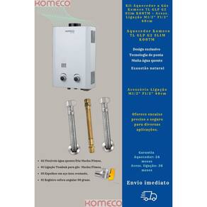 Kit Aquecedor de Água Komeco 7L GLP G2 SLIM KO07M + Acessórios Ligação a gás M1/2" F1/2" 40cm