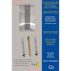 Kit Aquecedor de Água Komeco KO21DiG2 21L GLP Inox + Acessórios Ligação a gás Komeco M1/2" F1/2" 40cm