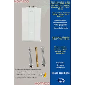 Kit Aquecedor Komeco KO26L Home GLP Branco + Acess. Ligação