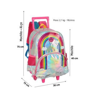 Mochila com rodas: Confeccionada em poliéster fechamento em zíper puxadores personalizados compartimentos espaçosos 2 bolsos laterais para garrafa possui rodas e alça de mão design exclusivo etiqueta de identificação na parte traseira Medidas aproximadas: Altura mochila+alça : 75 cm altura mochila : 40 cm largura: 15 cm comprimento: 30 cm