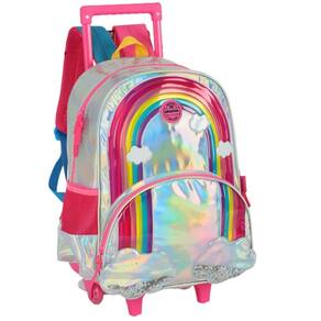 Mochila com rodas: Confeccionada em poliéster fechamento em zíper puxadores personalizados compartimentos espaçosos 2 bolsos laterais para garrafa possui rodas e alça de mão design exclusivo etiqueta de identificação na parte traseira Medidas aproximadas: Altura mochila+alça : 75 cm altura mochila : 40 cm largura: 15 cm comprimento: 30 cm