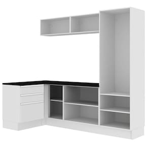 - Um (1) balcão de canto reto com uma (1) porta e tampo;