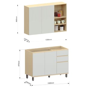 • Largura: Armário: 120 cm; Balcão: 120 cm