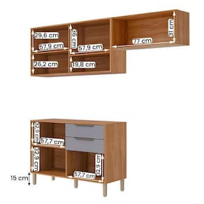 Feita em MDF de alta qualidade, oferece 5 portas com dobradiças soft close, 2 gavetas com corrediças telescópicas e pés reguláveis para praticidade total.