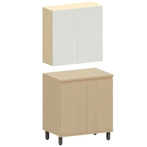 Kit Armário Aéreo e Balcão 2 Portas 80 cm Aurora - Cinza