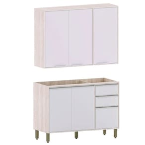 • 1 x Balcão de Pia para Cozinha 120 cm 2 Portas 3 Gavetas Atenas