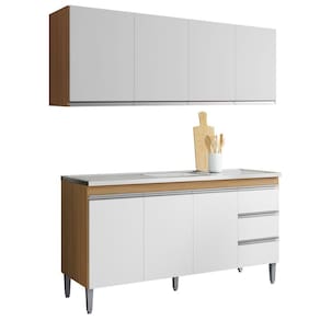Transforme sua cozinha com o Kit Armário Aéreo e Balcão de Pia Adriana, uma combinação perfeita de funcionalidade e estilo. Com design moderno e acabamento sofisticado, o conjunto é ideal para quem busca praticidade sem abrir mão da elegância. O armário aéreo de 150 cm possui estrutura em MDP com pintura UV, quatro portas com dobradiças metálicas, puxadores em alumínio e prateleira interna, oferecendo organização e charme na medida certa. Já o balcão de pia conta com três portas, três gavetas com corrediças metálicas, prateleira interna e pés em PVC, tudo com acabamento fosco e toque suave. Uma escolha inteligente para valorizar e otimizar o seu espaço!