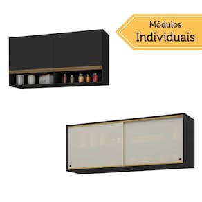 Conteúdo da Embalagem: 1 (um) Armário de Cozinha Aéreo 105cm 1 (um) Armário Aéreo com Portas de Vidro 120cm Kit Ferragem Manual de Montagem