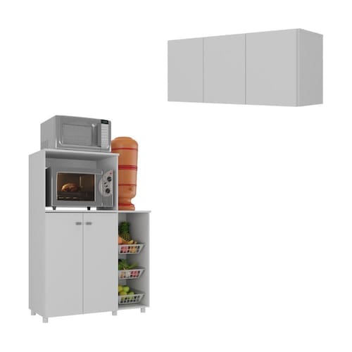 Organize sua cozinha de maneira prática e elegante com o Kit Armário de Cozinha 3 Portas com Balcão Multiuso/Fruteira Multimóveis MP2235. Produzido em MDP com acabamento acetinado (cerca de 20% de brilho), garante durabilidade e sofisticação. O armário aéreo (suporta até 9kg no seu interior) possui 3 portas para armazenar louças. Com amplo espaço de armazenamento, o balcão multiuso possui 2 portas com puxadores em ABS modernos, 3 fruteiras, para manter suas frutas e legumes em ordem, e espaço para forno ou micro-ondas. Conta com pés em polipropileno que oferecem estabilidade ao móvel. As dobradiças metálicas proporcionam maior resistência e qualidade ao kit, para acompanhar sua tarefas diárias por muito tempo.