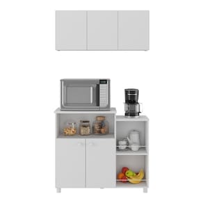 Fabricado em MDP com acabamento acetinado (cerca de 20% de brilho), este conjunto garante durabilidade e resistência. O armário aéreo de 3 portas facilita o acesso aos objetos guardados, tornando o dia a dia na cozinha muito mais prático.