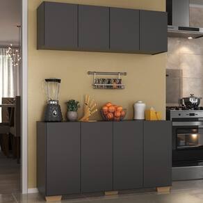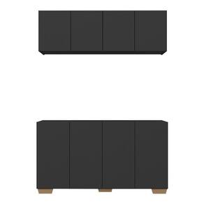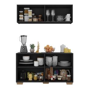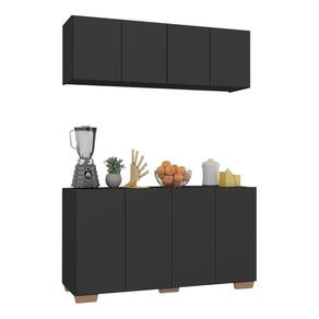 Kit Armário De Cozinha Aéreo E Balcão 4 Portas Multimóveis Mp2171 Preto/natural Preto/natural