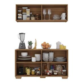 Kit Armário de Cozinha Aéreo e Balcão 4 Portas Multimóveis MP2171 - Marrom