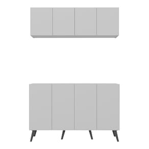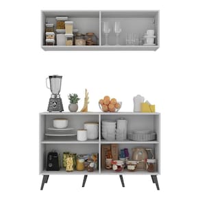 Kit Armário De Cozinha Aéreo E Balcão 4 Portas Retrô Multimóveis Mp2170 Branco/preto Branco/preto O Kit Armário de Cozinha Aéreo e Balcão 4 Portas Retrô Multimóveis MP2170 é perfeito para quem busca praticidade e organização no ambiente culinário. Fabricado em MDP (15mm) com acabamento acetinado (cerca de 20% de brilho), garante durabilidade e resistência. Composto por um balcão e um armário aéreo com 4 portas e prateleiras, oferece amplo espaço interno para organizar todos os utensílios de cozinha de forma prática. O balcão ainda possibilita apoiar os itens mais utilizados no dia a dia, mantendo tudo sempre à mão na hora de preparar suas receitas favoritas. Com design clean que confere um visual moderno e sofisticado, este kit combina perfeitamente com qualquer tipo de decoração. Os pés retrô em polipropileno oferecem estabilidade e um charme vintage ao balcão. Conteúdo da Embalagem: 1 (um) Balcão 1 (um) Armário Aéreo Manual de Montagem Kit Ferragem