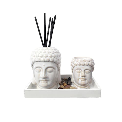 O Enfeite Decorativo De Porcelana Kit Buda com Difusor de Aromas da pode ser usado como Difusor aromático, porta velas, porta incenso.