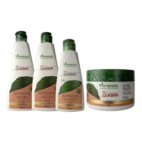 Kit arvensis antiquebra shampoo cond leave-in mascara 250gNeste anúncio contém:1 unidade shampoo antiquebra arvensis 300ml1 unidade condicionador antiquebra arvensis 300ml1 unidade leave-in antiquebra arvensis 200ml1 unidade máscara antiquebra arvensis 250g Shampoo anti-quebra arvensis 300ml Composta por uma associação de produtos que restauram e protegem a fibra capilar desde a cutícula até o córtex, a linha anti-quebra trata profundamente os fios, tornando-os mais resistentes à quebra e, consequentemente, à queda. Contém aminoácidos essenciais que, associadas a filtros solares, protegem e devolvem a massa aos cabelos, perdida por processos oxidativos como tinturas, alisamentos temporários e permanentes, radiações uv, calor de secadores e chapinhas, estresse ambiental e tratamentos químicos em geral. Indicação: cabelos quebradiços, principalmente em casos de corte químico. Principais ativos: arginina, creatina e óleo de pracaxi orgânico. Com toque sedoso, o shampoo anti quebra limpa suavemente os cabelos protegendo a raiz e a extensão dos fios, desde a cutícula até o córtex. 300ml - sem sal - ph 5,0 - 5,5 Condicionador anti-quebra arvensis 300ml Composta por uma associação de produtos que restauram e protegem a fibra capilar desde a cutícula até o córtex, a linha anti-quebra trata profundamente os fios, tornando-os mais resistentes à quebra e, consequentemente, à queda. Contém aminoácidos essenciais que, associadas a filtros solares, protegem e devolvem a massa aos cabelos, perdida por processos oxidativos como tinturas, alisamentos temporários e permanentes, radiações uv, calor de secadores e chapinhas, estresse ambiental e tratamentos químicos em geral. Indicação: cabelos quebradiços, principalmente em casos de corte químico. Principais ativos: arginina, creatina e óleo de pracaxi orgânico. Condiciona e restaura a estrutura danificada tornando o fio mais resistente à quebra. Com ação protetora, age no fechamento das cutículas e evita o frizz. 300ml ph 3,5 - 4,5 Leave-in anti-quebra arvensis 200g Composta por uma associação de produtos que restauram e protegem a fibra capilar desde a cutícula até o córtex, a linha anti-quebra trata profundamente os fios, tornando-os mais resistentes à quebra e, consequentemente, à queda. Contém aminoácidos essenciais que, associadas a filtros solares, protegem e devolvem a massa aos cabelos, perdida por processos oxidativos como tinturas, alisamentos temporários e permanentes, radiações uv, calor de secadores e chapinhas, estresse ambiental e tratamentos químicos em geral. Indicação: cabelos quebradiços, principalmente em casos de corte químico. Principais ativos: arginina, creatina e óleo de pracaxi orgânico. O leave-in anti quebra proporciona brilho extra e proteção reforçada contra danos externos. Contém filtro solar. 200ml - ph 4,0 - 4,5 Máscara anti-quebra arvensis 250g Composta por uma associação de produtos que restauram e protegem a fibra capilar desde a cutícula até o córtex, a linha anti-quebra trata profundamente os fios, tornando-os mais resistentes à quebra e, consequentemente, à queda. Contém aminoácidos essenciais que, associadas a filtros solares, protegem e devolvem a massa aos cabelos, perdida por processos oxidativos como tinturas, alisamentos temporários e permanentes, radiações uv, calor de secadores e chapinhas, estresse ambiental e tratamentos químicos em geral. Indicação: cabelos quebradiços, principalmente em casos de corte químico. Principais ativos: arginina, creatina e óleo de pracaxi orgânico. A máscara anti quebra hidrata, nutre e devolve a massa perdida em processos químicos. Aumenta a resistência e elasticidade dos fios, diminuindo as quebras. 250g - ph 4,0 - 4,5