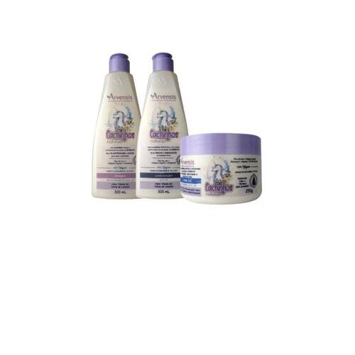 Kit arvensis cachinhos shampoo + condicionador mascara 2x1Neste anúncio contém:1 unidade shampoo cachinhos arvensis 300ml1 unidade condicionador cachinhos arvensis 300ml1 unidade mascara cachinhos 2x1 arvensisLinha cachinhos naturaisA linha cachinhos naturais foi desenvolvida para atender aos mais diferentes tipos de ondinhas e cachinhos. Entendendo que o cabelo infantil 2,3 e 4 possui características próprias, a linha trata - de forma particular - os fios, conferindo inúmeros benefícios como nutrição avançada, reparação dos fios danificados, aumento da elasticidade, alta hidratação, maciez, brilho extra e um incrível efeito memória nos fios, além de combater o maldoso frizz.Shampoo cachinhos arvensisDesenvolvido com uma formulação livre de sulfato e de sal, o shampoo cachinhos naturais é especial para a limpeza suave de todos os tipos de cabelos cacheados. 300ml - sem sal - ph 5,0 - 6,0 low poo Indicação: todos os cachinhos. O uso é recomendado apenas em crianças a partir dos 3 anos, neste caso deve ser aplicado exclusivamente por um adulto. Para crianças maiores de 5 anos: usar sob a supervisão de um adulto.Principais ativos: óleo de coco, colágeno vegetal.Condicionador cachinhos naturais arvensisO condicionador cachinhos naturais é ideal para o tratamento de todos os tipos de cabelos cacheados, proporcionando inúmeros benefícios como nutrição avançada, reparação dos fios danificados, condicionamento equilibrado, maciez, brilho e controle do frizz. 300ml - ph 3,5 - 4,5 low poo Indicação: todos os cachinhos. O uso é recomendado apenas em crianças a partir dos 3 anos, neste caso deve ser aplicado exclusivamente por um adulto. Para crianças maiores de 5 anos: usar sob a supervisão de um adulto.Principais ativos: óleo de coco, colágeno vegetal.Mascara cachinhos 2x1 arvensisDesenvolvido para atuar como hidratante e finalizador de cabelos crespos e crespíssimos, o creme cachinhos naturais 2x1 possui ação protetora e multifuncional - conferindo resistência, formação de filme e controle de frizz, além de manter a umidade natural e definir cachos nutridos radiantes. Contém filtro solar. 250g - ph 3,5 - 4,5 no poo Indicação: cachinhos crespos e crespíssimos 3b / 3c / 4a / 4b / 4c . O uso é recomendado apenas em crianças a partir dos 3 anos, neste caso deve ser aplicado exclusivamente por um adulto. Para crianças maiores de 5 anos: usar sob a supervisão de um adulto.Principais ativos: óleo de coco, colágeno vegetal, abacate.