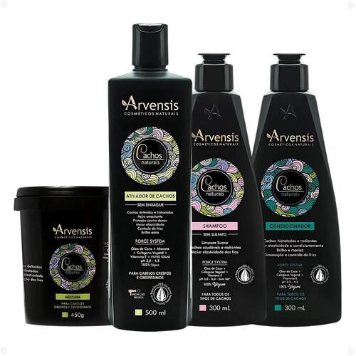 O Kit Arvensis Cachos Naturais para Cabelos Crespos e Crespíssimos foi desenvolvido especialmente para atender às necessidades dos fios com curvaturas 4A, 4B e 4C. Composto por Shampoo, Condicionador, Máscara de Hidratação e Ativador de Cachos, esse kit oferece um tratamento completo que limpa suavemente, hidrata profundamente, fortalece e define os fios, mantendo o volume natural e controlando o frizz. Sua fórmula vegana é rica em ingredientes nutritivos e não contém sulfatos, parabenos, petrolatos ou silicones pesados, sendo ideal para quem segue rotinas Low Poo e No Poo.