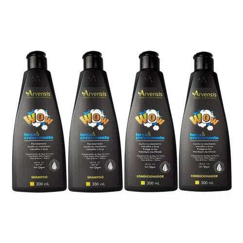 Kit arvensis wow força e crescimento shampoo+condicionadorEsse kit contém:2 unidade shampoo wow força e crescimento arvensis 300ml2 unidade condicionador wow força e crescimento arvensis 300mlShampoo wow força e crescimento arvensisA linha wow força e crescimento é um suplemento capilar de alta eficácia, capaz de promover um tratamento intensivo nos cabelos afinados e com crescimento comprometido.Sua fórmula, enriquecida com oligoelementos de algas vermelhas, rice protein whey vegano , óleo de rícino e biotina, age na camada mais profunda dos fios, aumentando a força, a vitalidade e a resistência da estrutura capilar, contribuindo para o crescimento saudável dos fios.O shampoo wow força e crescimento confere uma limpeza suave aos cabelos, promovendo um eficiente pré-tratamento dos fios. Auxilia no crescimento e intensifica a força da fibra capilar. 300 ml - sem sal - ph 5,0 - 5,5Indicação: cabelos afinados e com crescimento comprometido.Principais ativos: rice protein whey vegano , oligoelementos das algas vermelhas, biotina e óleo de rícino.Condicionador wow força e crescimento arvensisO condicionador wow força e cresimento condiciona os cabelos, conferindo proteção extra aos cabelos. Sua formulação, rica em ativos especiais, promove hidratação equilibrada e força intensiva, além de auxiliar no crescimento dos fios. 300 ml ph 3,5 - 4,5Indicação: cabelos afinados e com crescimento comprometido.Principais ativos: rice protein whey vegano , oligoelementos das algas vermelhas, biotina e óleo de rícino.